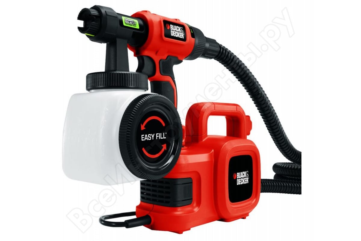 Напольный краскопульт Black-Decker HVLP400 представляет собой современный малярный инструмент для работы с краской различного типа. Благодаря электрическому приводу процесс окрашивания габаритных поверхностей не утомляет оператора. Наполнение бачка краской отличается простотой и не вызывает затруднений. Для удобства в работе предусматривается индикация расхода краски Данная информация скопирована со страницы: https://www.vseinstrumenti.ru/instrument/kraskopulty/elektricheskie/black-decker/napolnyj-kraskopult-black-decker-hvlp400/