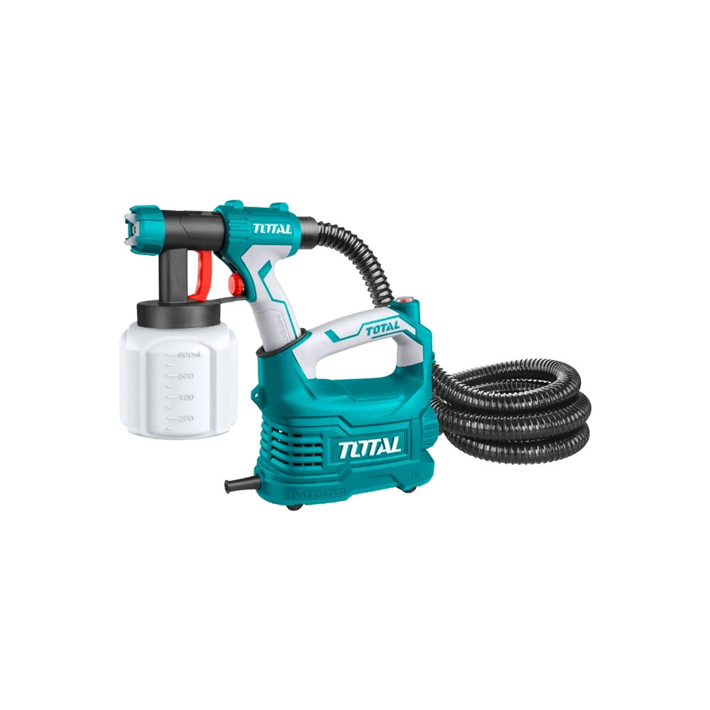 Краскораспылитель TOTAL TT5006. Предназначен для нанесения на поверхности лакокрасочных покрытий. Данная модель оснащена двухкомпонентной рукояткой, обеспечивающей удобство работы. Благодаря расположению двигателя в отдельном корпусе достигается небольшой вес пистолета для комфорта при продолжительной эксплуатации. Расход краски составляет 850 мл/мин, за счет чего достигается высокая производительность.