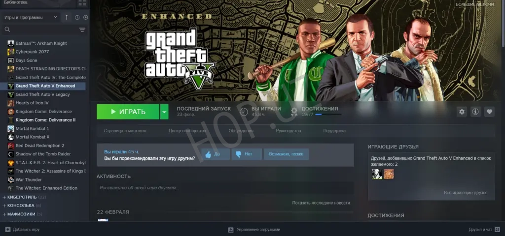 RTX 3050 4 ГБ — на средне-высоких в 1080p почти всё летает комфортно (Cyberpunk с DLSS, Witcher 3, Hogwarts Legacy, Tarkov, Dota/CS2 — всё на нормальных fps, на скринах вы увидите по сколько часов я сыграл в требовательные игры)