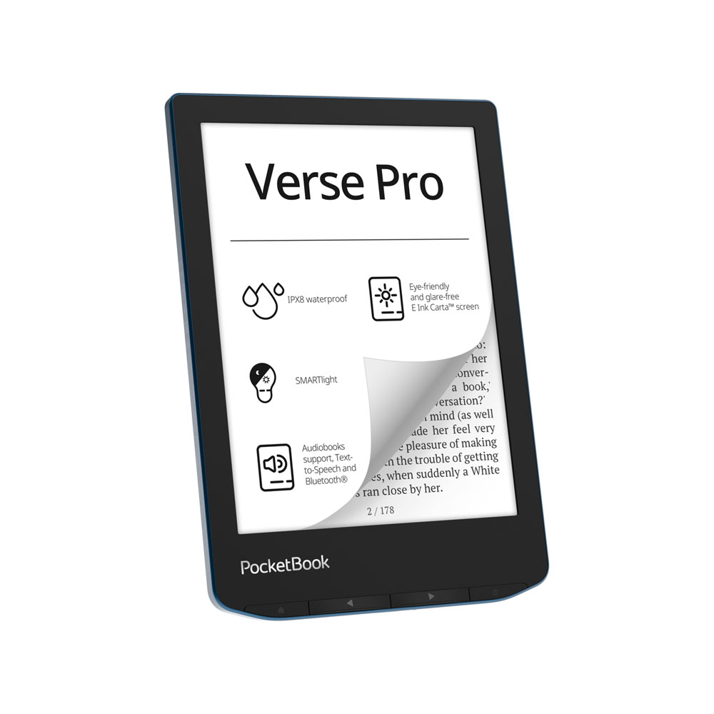 Читайте с экрана как с книжной страницы PocketBook Verse Pro оснащен 6-дюймовым экраном E Ink Carta™ с HD разрешением 1072×1448 и плотностью 300 PPI. Вы можете наслаждаться электронным чтением, не заботясь о безопасности глаз: устройство имеет оптические характеристики, настолько приближенные к печатной странице, насколько это возможно для гаджета. Дисплей E Ink не бликует на солнце, что делает его идеальным для чтения на улице, а качество отображения страницы и идеально четкий текст гарантируют истинное удовольствие от электронного чтения. Еще одна важная деталь: энергоэффективная технология E Ink обеспечивает до одного месяца чтения на одном заряде аккумулятора. Технология SMARTlight и темный режим Еще две функции, которые значительно способствуют комфорту чтения, это SMARTlight и темный режим. В ручном режиме SMARTlight позволяет настроить яркость и выбрать теплый или прохладный тон подсветки для экрана, а также сохранить настройки для удобного переключения в будущем. В автоматическом режиме SMARTlight будет регулировать яркость и цветовую температуру в соответствии с временем суток. Темный режим улучшает комфорт чтения при плохом освещении, делая фон темным, а текст белым, что может помочь снизить нагрузку на глаза. Text-to-Speech и аудиокниги PocketBook Verse Pro поддерживает функцию Text-to-Speech, которая может превратить любой текстовый файл в звуковую дорожку, озвучив его на одном из 26 доступных языков. Переключайтесь с чтения книги на ее прослушивание в любое время: всего два клика, и ридер начнет читать вслух, пока вы занимаетесь домашними делами.