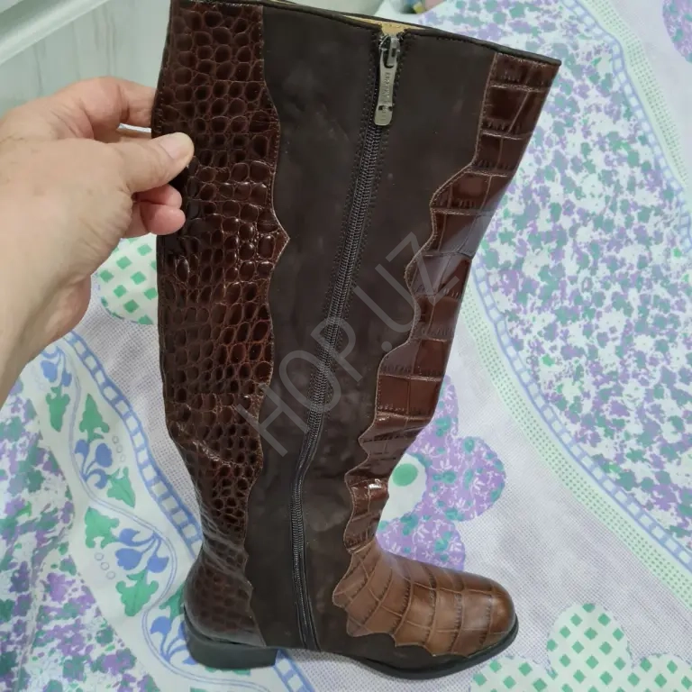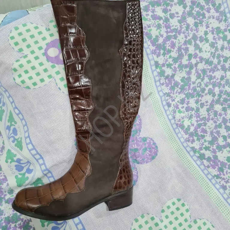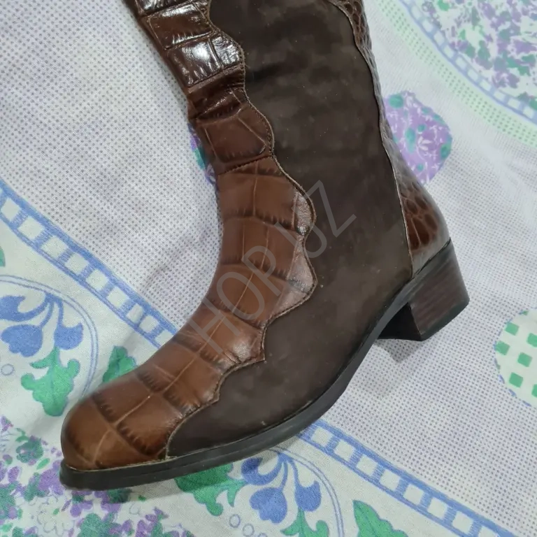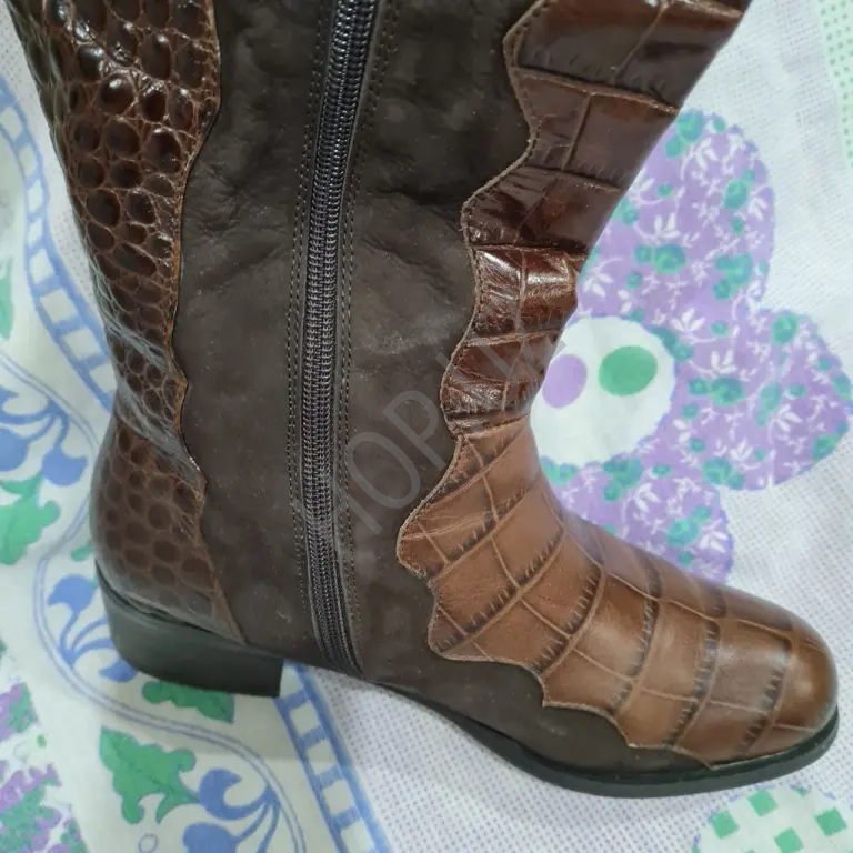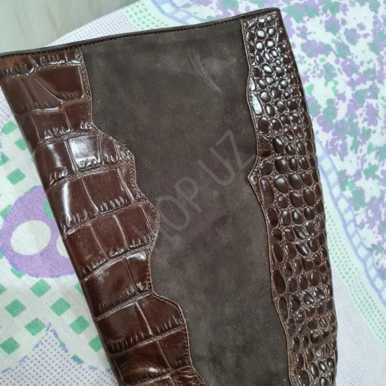 Продам шикарные сапоги, внутри на байке, высокие до колена, наборный каблучок невысокий, крокодилова кожа, набук. Очень шикарно и модно смотрится.