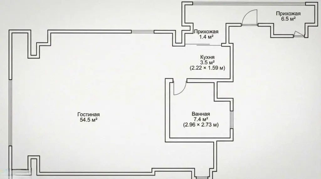 Общаая площадь 74м²