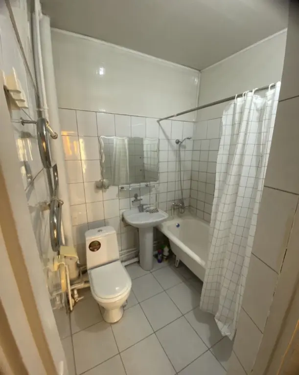Санузел совмещён в кафеле.