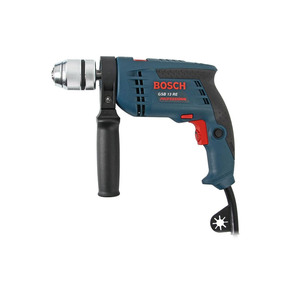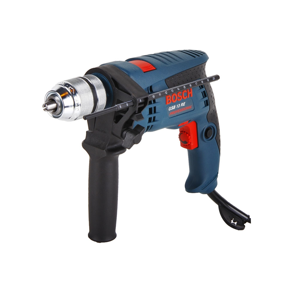 Ударная дрель BOSCH GSB 13 RE 0.601.217.100 предназначена для сверления в древесине, металле и кирпиче. Дрель оснащена системой электронной регулировки оборотов. Быстрозажимной патрон позволяет быстро и просто менять насадки. Дрель самая компактная и легкая в своем классе. Экономия времени Быстрозажимной патрон обеспечивает быструю смену рабочей насадки. Регулировка оборотов Инструмент оснащен колесиком для регулировки оборотов - можно выставить нужную скорость: от 0 до 2800 об/мин. Комфортное управление Дрель оснащена большим и удобным переключателем режимов работы. Точность Ограничитель глубины ударной дрели BOSCH GSB 13 RE 0.601.217.100 обеспечивает точное и аккуратное сверление. Удобный хват Рукоятка с мягкой накладкой обеспечивает надежное и комфортное удержание. Преимущества BOSCH GSB 13 RE 601217100 Самая легкая и компактная ударная дрель в своем классе, Наличие реверса предотвращает поломку сверла при его заклинивании, Электронная система управления - для точного начала сверления, Держатель для оснастки на шнуре.