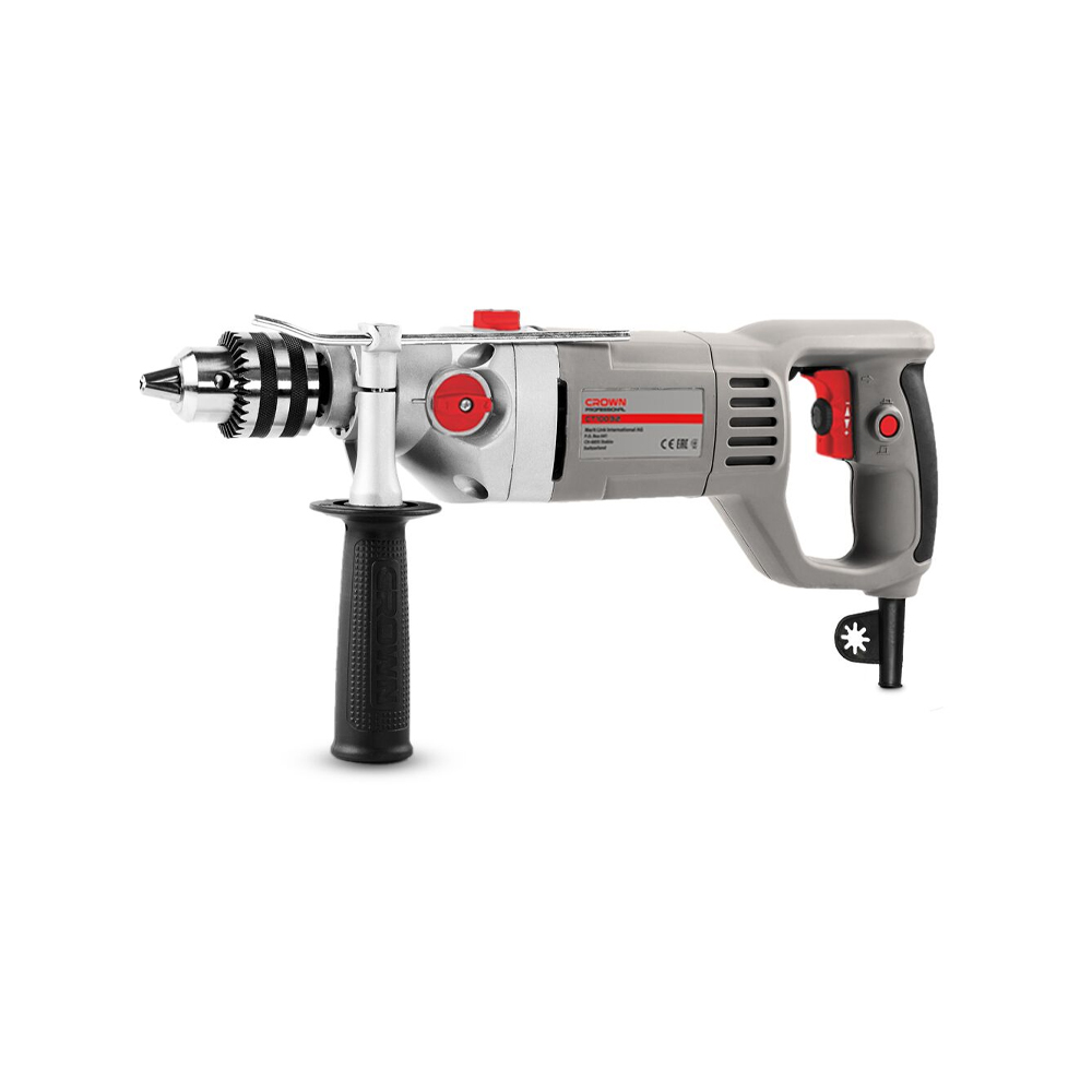 Дрель ударная CT10032 Ударная дрель предназначена для сверления различных материалов. Функция сверления с ударом позволяет работать с твёрдыми материалами такими как кирпич. Металлический корпус редуктора, обеспечивает хорошую теплоотдачу не перегревая инструмент при длительной работе. Ключевой патрон надёжно фиксирует оснастку. Двухскоростной редуктор позволяет сверлить на малых оборотах, увеличивая возможности инструмента. Для лучшего контроля, места хвата обладают прорезиненными вставками, снижая нагрузку на кисть оператора. Флажковый переключатель реверса удобно расположен, позволяя безопасно освобождать застрявшее сверло. Фиксация кнопки пуска упрощает эксплуатацию инструмента. Регулировка оборотов позволяет подбирать режим работы в зависимости от поставленных задач.