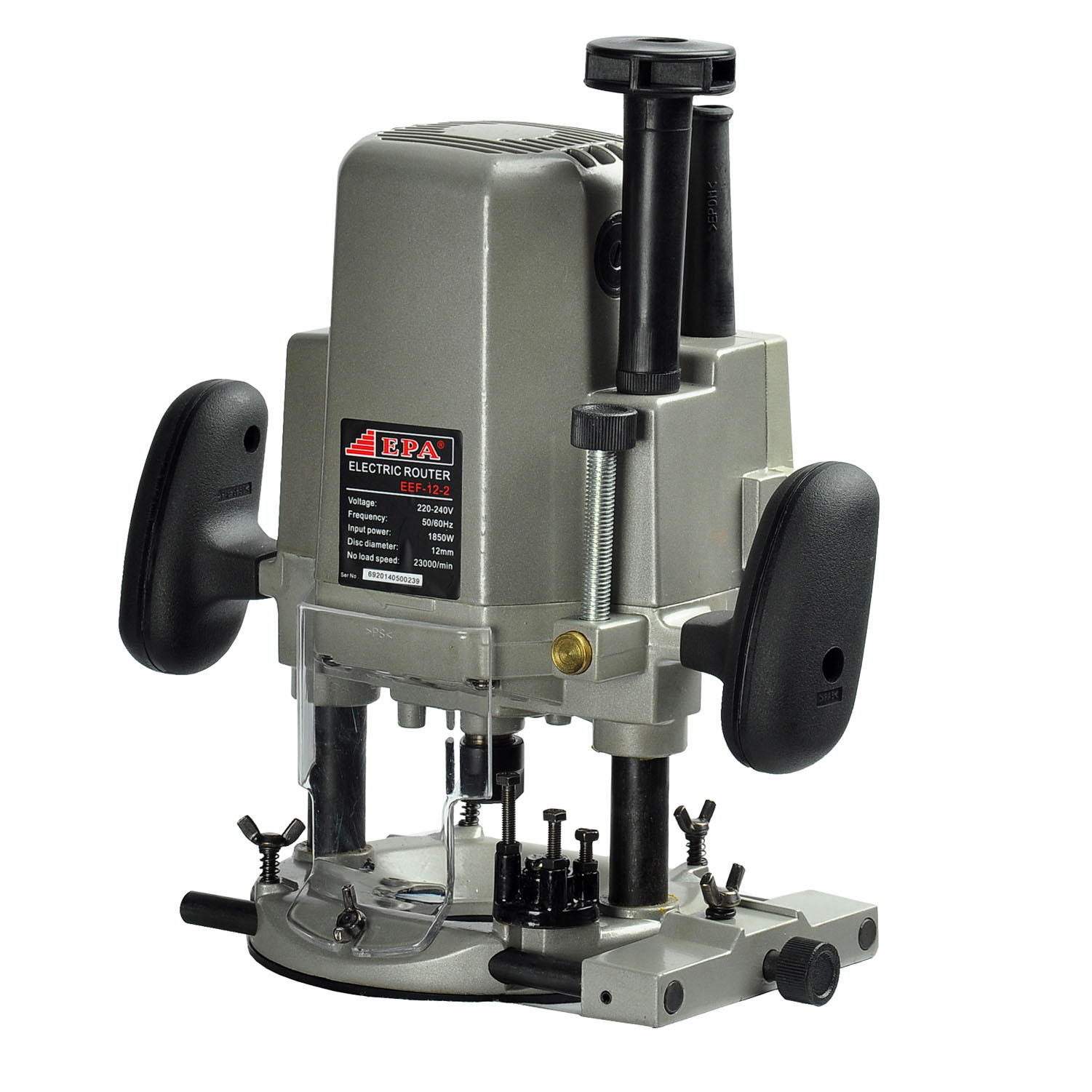 Мощный и надежный универсальный большой фрезер позволяет выполнять разнообразную обработку деревянных и композитных заготовок. Фрезер может двигаться по шаблону, по краю поверхности заготовки – для этого используются различные приспособления.
