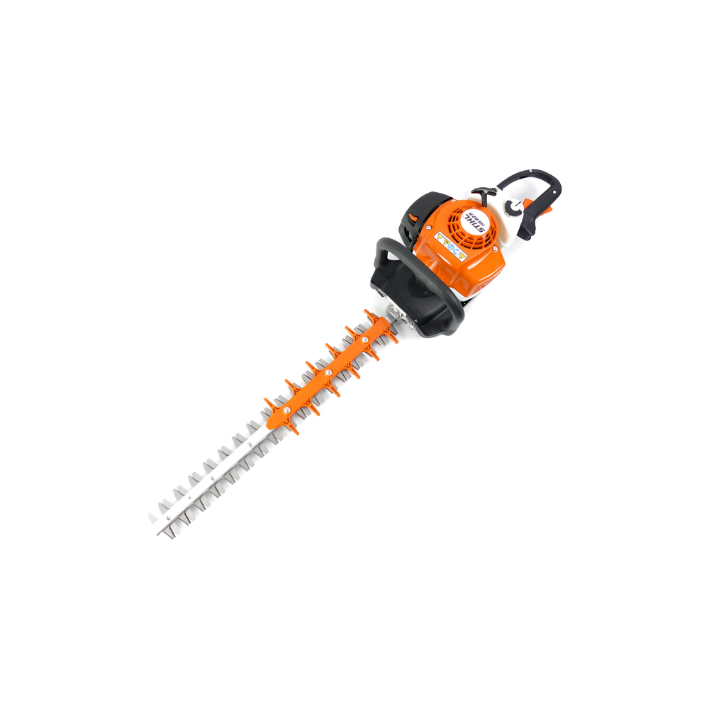 Мощный двигатель внутреннего сгорания на 750 Вт, встроенный топливный бак ёмкостью 0.22 литра, а также режущая система длиной в 60 см с 30-мм зубьями, способным справиться с достаточно толстыми ветками – вот перечень основных преимуществ модели. В отличие от электрических решений, использование в качестве топлива бензина делает устройство весьма автономным решением, но при этом ограничивает время беспрерывной работы. Весит устройство 5 кг. Прежде всего предназначено для ухода за живой изгородью и придания необходимой формы кустам.
