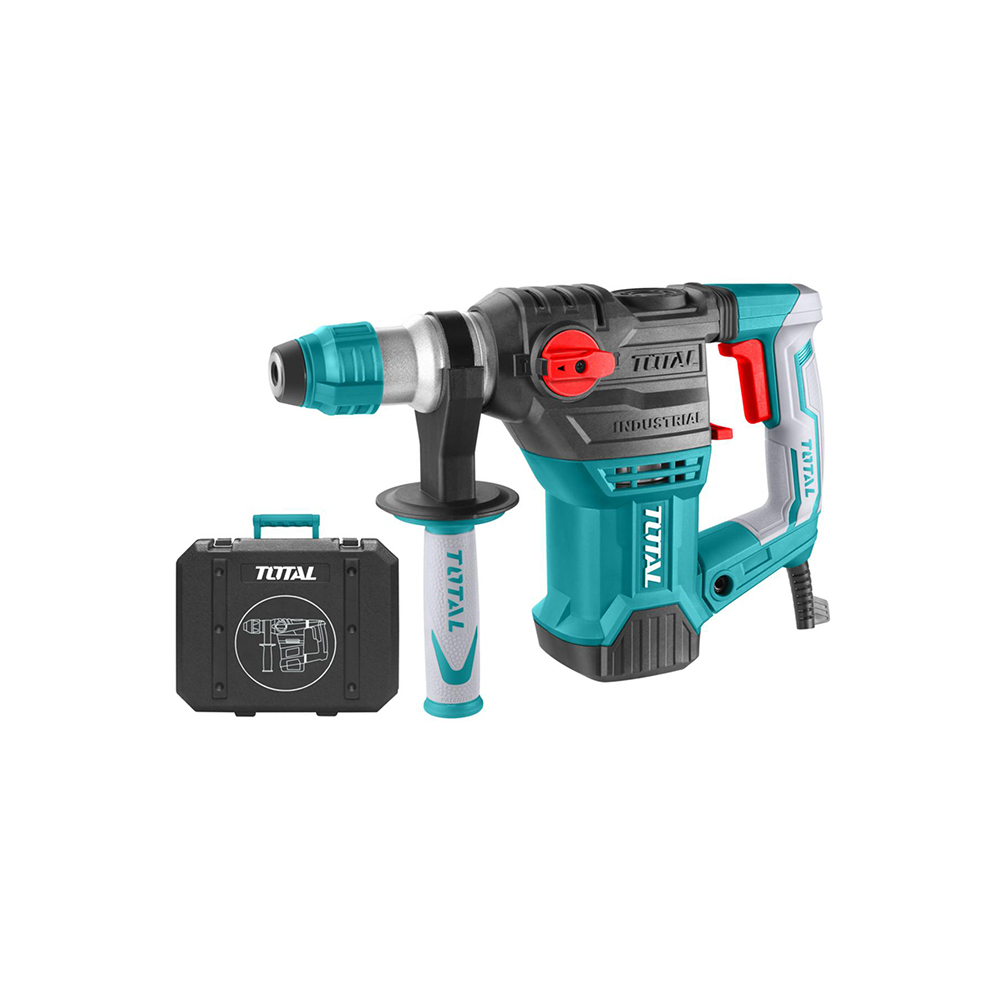 Перфоратор TOTAL TH1153216. Перфоратор TOTAL имеет три режима работы: сверление с ударом и без, долбление. При помощи дополнительной рукояти обеспечивается комфортная работа с инструментом. Благодаря обрезиненным вставкам на рукоятке и корпусе прибор надежно удерживается в руках и не выскальзывает. Кейс защищает набор при транспортировке и упрощает процесс хранения.