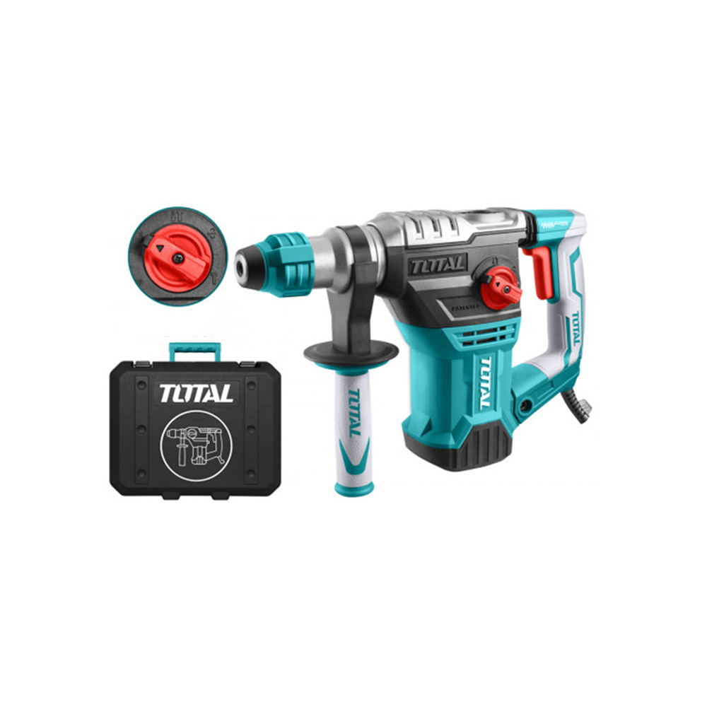 Перфоратор TOTAL TH1153236. Перфоратор TOTAL имеет три режима работы: сверление с ударом и без, долбление. При помощи дополнительной рукояти обеспечивается комфортная работа с инструментом. Благодаря обрезиненным вставкам на рукоятке и корпусе прибор надежно удерживается в руках и не выскальзывает. Кейс защищает набор при транспортировке и упрощает процесс хранения.