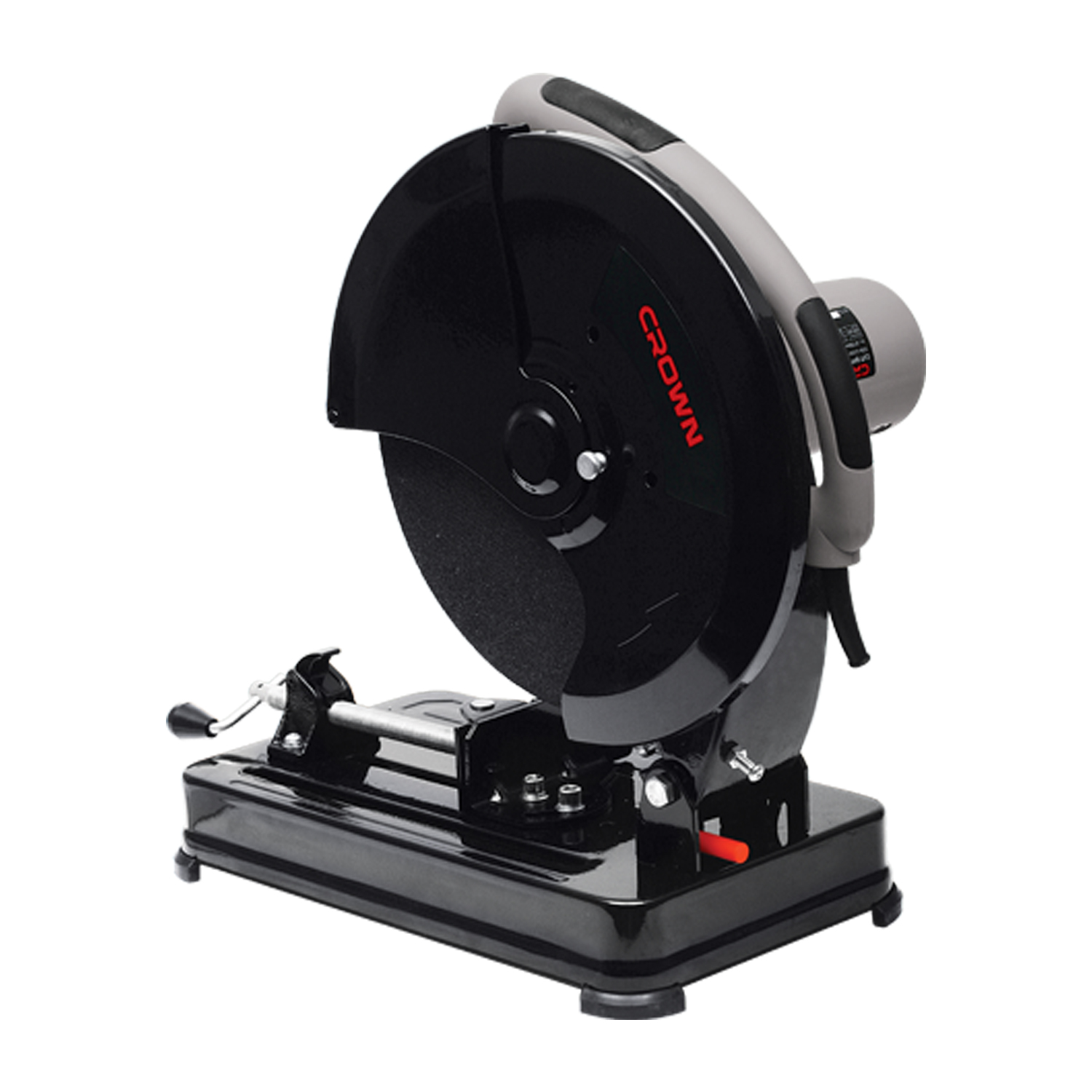 Двигатель мощностью 2200 Ватт Литая металлическая станина для выполнения тяжелых работ Эргономичная прорезиненная рукоятка Блокировка шпинделя для быстрой замены абразивного диска Направление вращения диска отбрасывает частицы обработанного металла от пользователя Обрабатываемые материалы: металлические трубы, уголки и др. Приспособление для угловой резки под 45°: влево/вправо