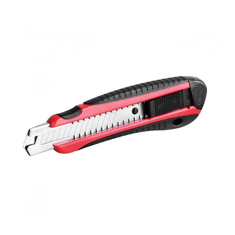 Представляет собой безопасно режущий удобный инструмент, без которого просто не обойтись при оклейке обоев. Им можно быстро и удобно разрезать виниловые, бумажные обои и даже картон, оформить оконные проемы. Пластмассовый прочный корпус очень удобно располагается в руке и предотвращает свободное проскальзывание вовремя работ. Выдвижение трапециевидного лезвия осуществляется по металлической направляющей и при помощи удобной кнопки фиксируется в неподвижном положении.