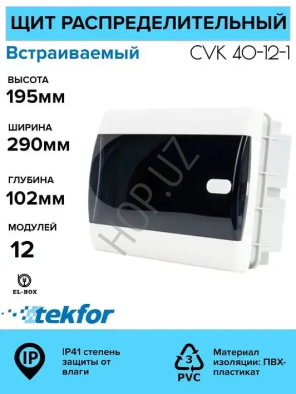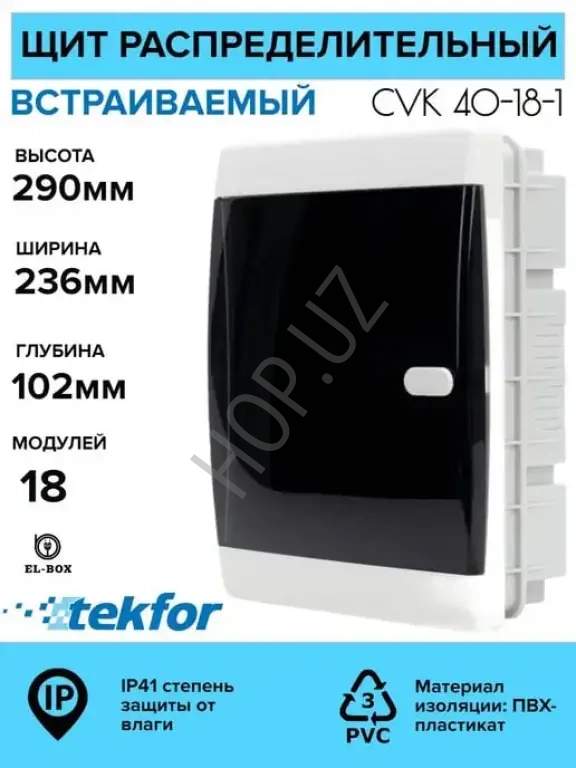 Щиты распределительные пластиковые наружного и внутреннего монтажа TEKFOR на 6,8,12,18,24,36,54 модулей IP41, IP65 цены договорные Произведены в России, цены договорные от 85000 сум договорные