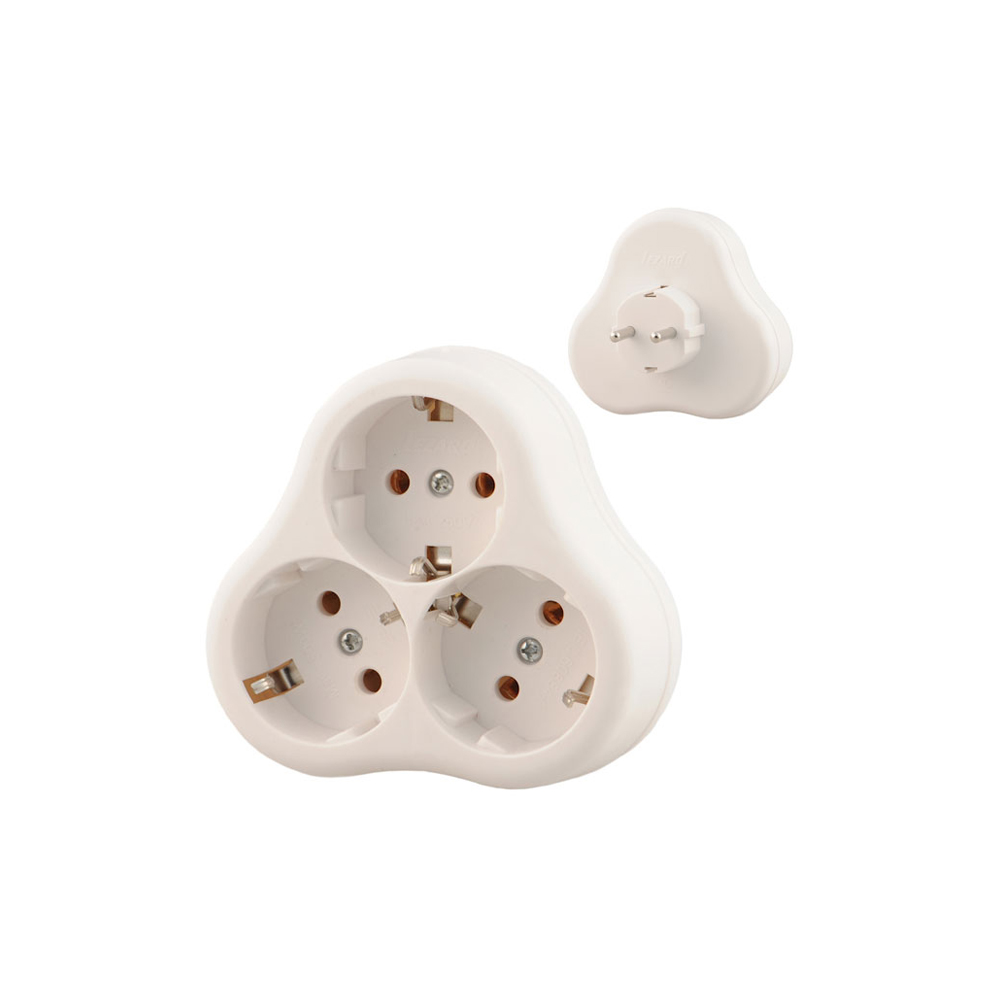 Тройник с заземляющим контактом, треугольный Номинальный ток: 16А Номинальное напряжение: 250 В